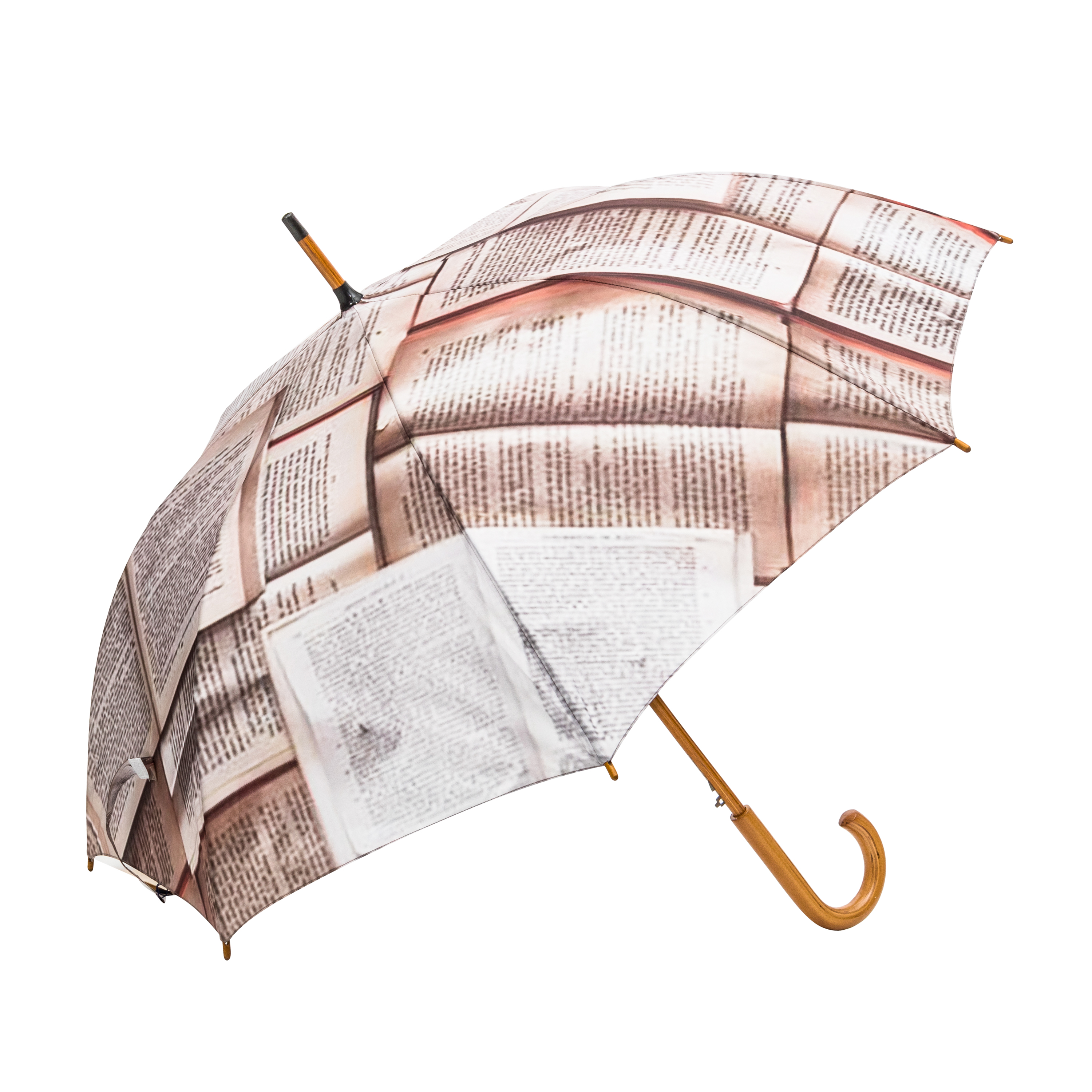 - Poignée courbée en bois avec tige et accents assortis.
