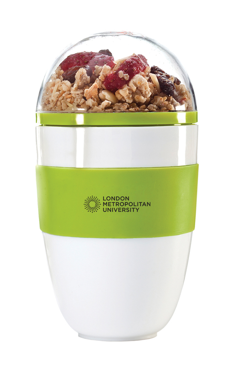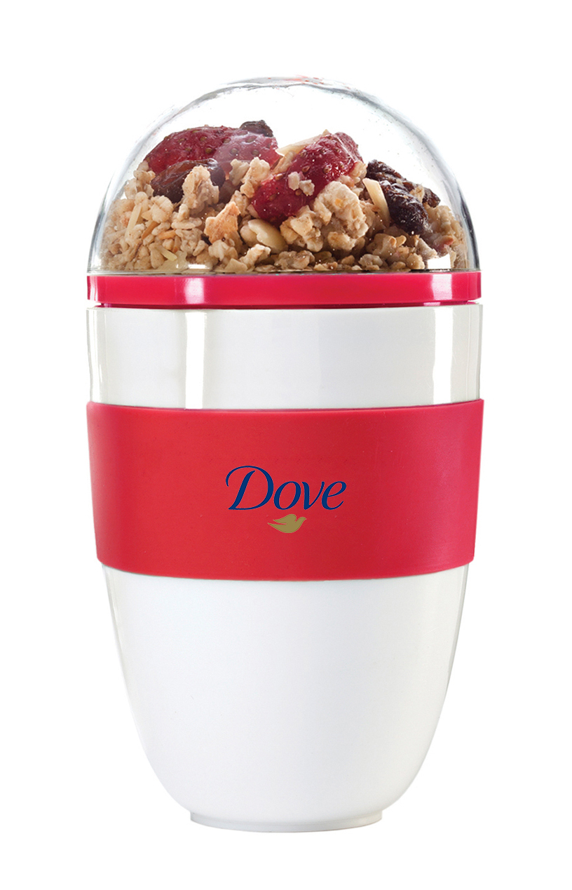- Double walled container keeps yogurt fresh, while the top section holds your extras.